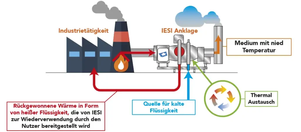 Dank ihrer Fähigkeit, Wärme aus „Abfall“-Wärmequellen zurückzugewinnen und in Warmwasser oder Thermoöl umzuwandeln, leistet die IESI einen sehr wichtigen Beitrag zur Energiewende hin zu null Treibhausgasemissionen bis 2050.