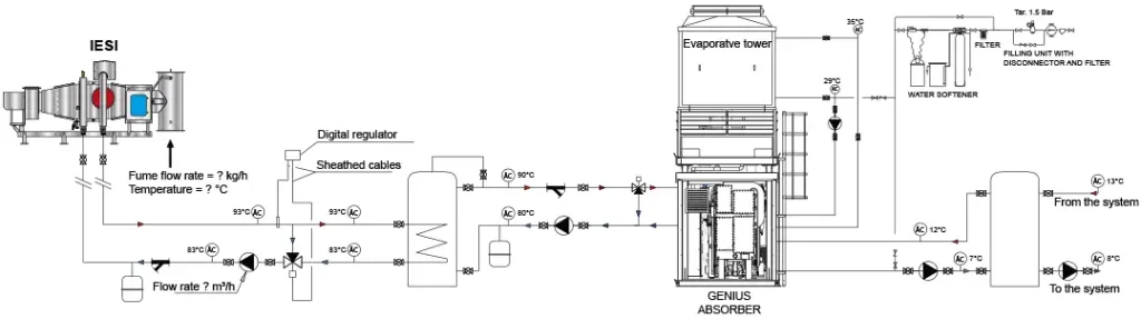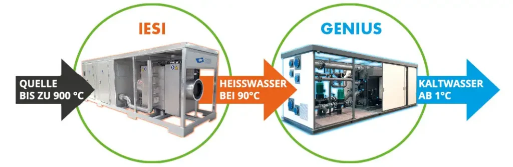 Die mit Iesi zurückgewonnene Wärmeenergie kann als kostenlose Energiequelle für den Genius-Lithiumbromid-Absorber zur Erzeugung von Kaltwasser bis zu 1°C dienen.