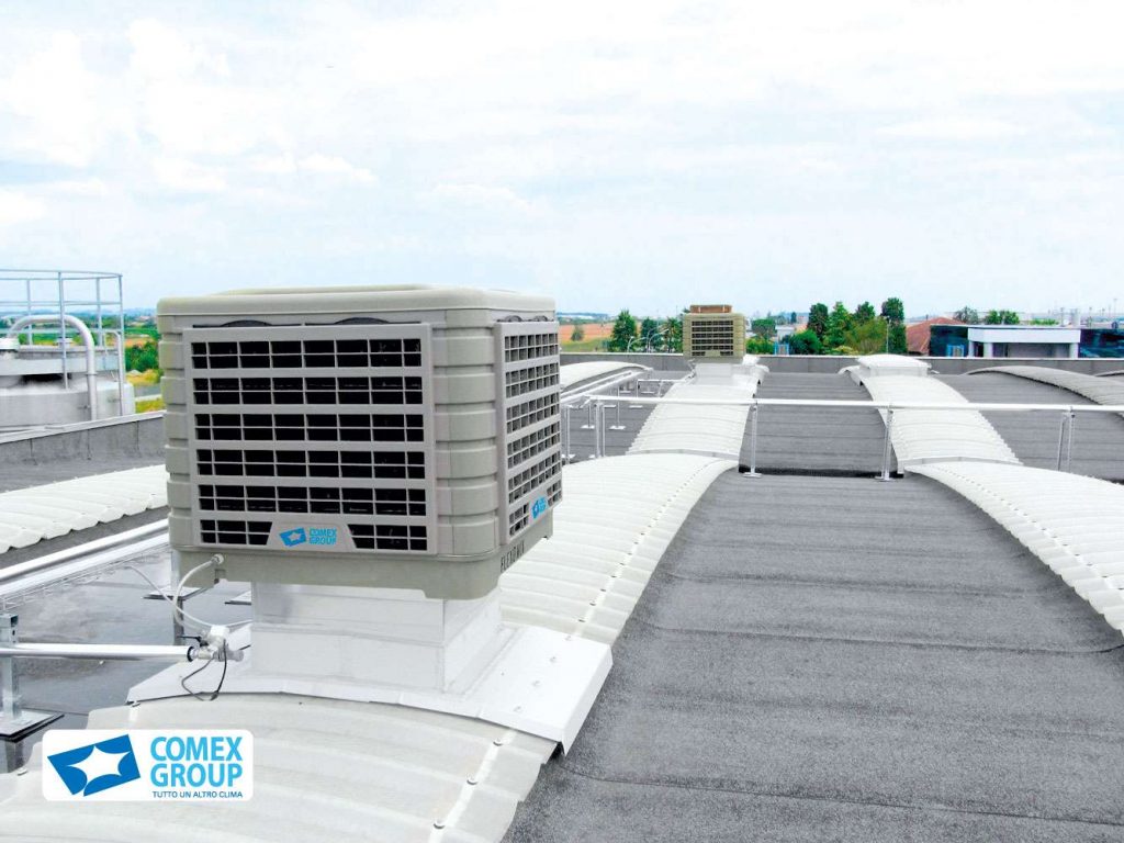 It is suitable for use in rooms of various sizes and sectors, thanks to its simple technology, where the operating principle is based on the natural process of adiabatic air saturation, with the exchange of thermal energy between water and air.